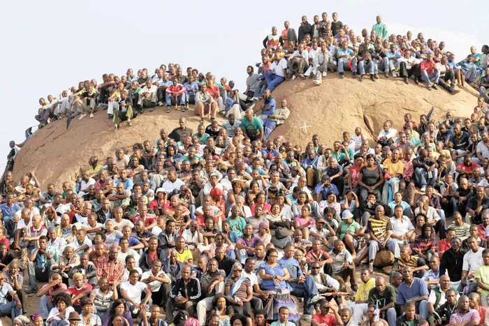 The mining community gathers at the “Hill of Horror” during a memorial service for miners killed during clashes at Lonmin’s Marikana platinum mine in Rustenburg, in August 2012. Picture: REUTERS. The mining community gathers at the “Hill of Horror” during a memorial service for miners killed during clashes at Lonmin’s Marikana platinum mine in Rustenburg, in August 2012. Picture: REUTERS.