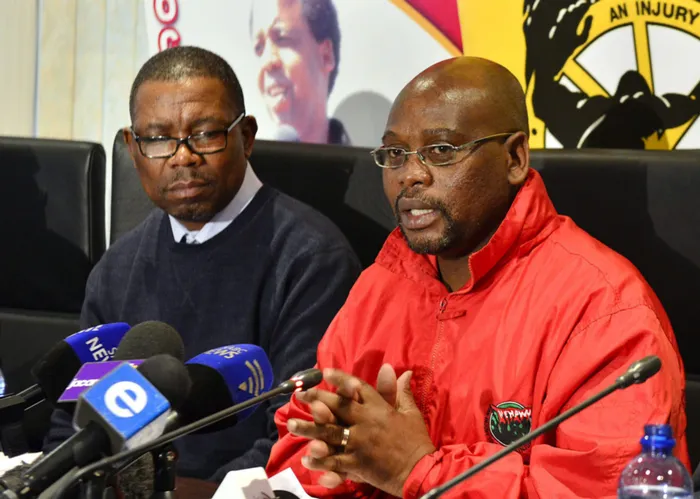 396 Cosatu's Sidumo Dlamini and Bheki Ntshalintshali address the media at Cosatu house in Braamfontein on Zwelinzima Vavi's suspension. 150813. Picture: Bongiwe Mchunu 396 Cosatu's Sidumo Dlamini and Bheki Ntshalintshali address the media at Cosatu house in Braamfontein on Zwelinzima Vavi's suspension. 150813. Picture: Bongiwe Mchunu