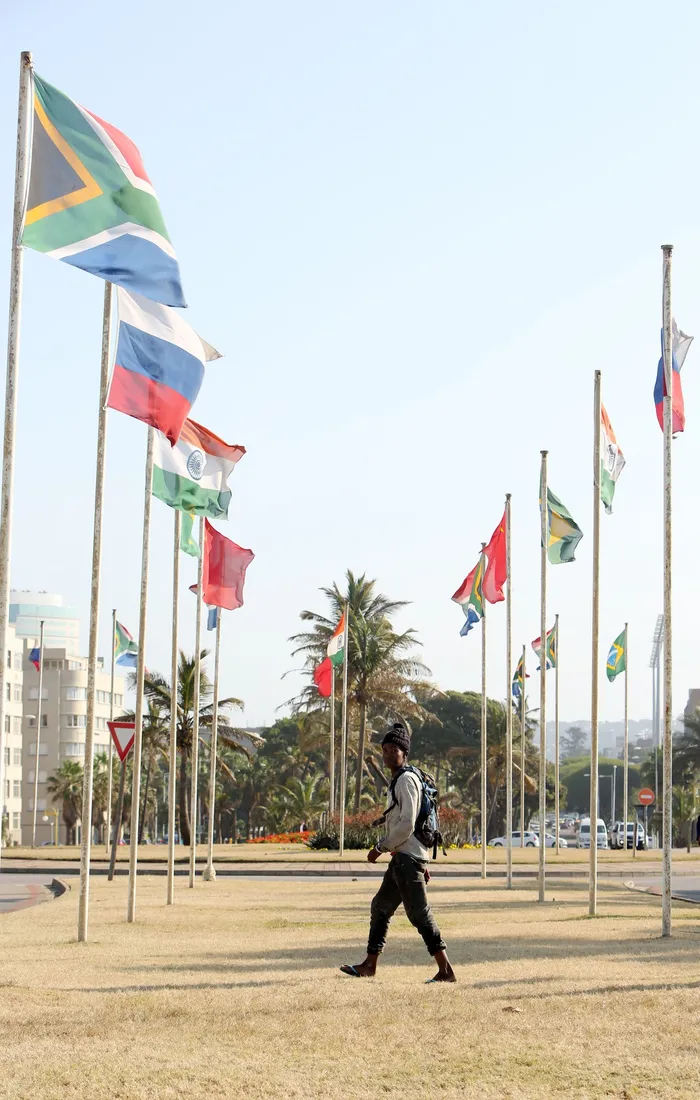 BRICS countries flags at the corner of K.E Masinga road and Snell Parade at the Durban beachfront is part of the well know 6km stretch of Durbans Golden Mile. Picture: Motshwari Mofokeng/African News Agency (ANA) BRICS countries flags at the corner of K.E Masinga road and Snell Parade at the Durban beachfront is part of the well know 6km stretch of Durbans Golden Mile. Picture: Motshwari Mofokeng/African News Agency (ANA)