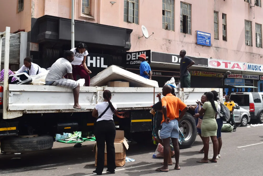 Durban — There was chaos as illegal occupants were evicted from a building in the Durban CBD, around Victoria Street, on Monday morning. It is alleged that the building had been “hijacked” and occupied by “illegal immigrants”.