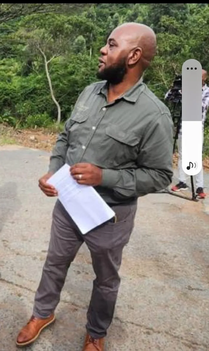 KwaDukuza Local Municipality deputy mayor Thulani Ntuli introducing the contractor which will repair the Mbozana River bridge just hours before his death. Photo supplied