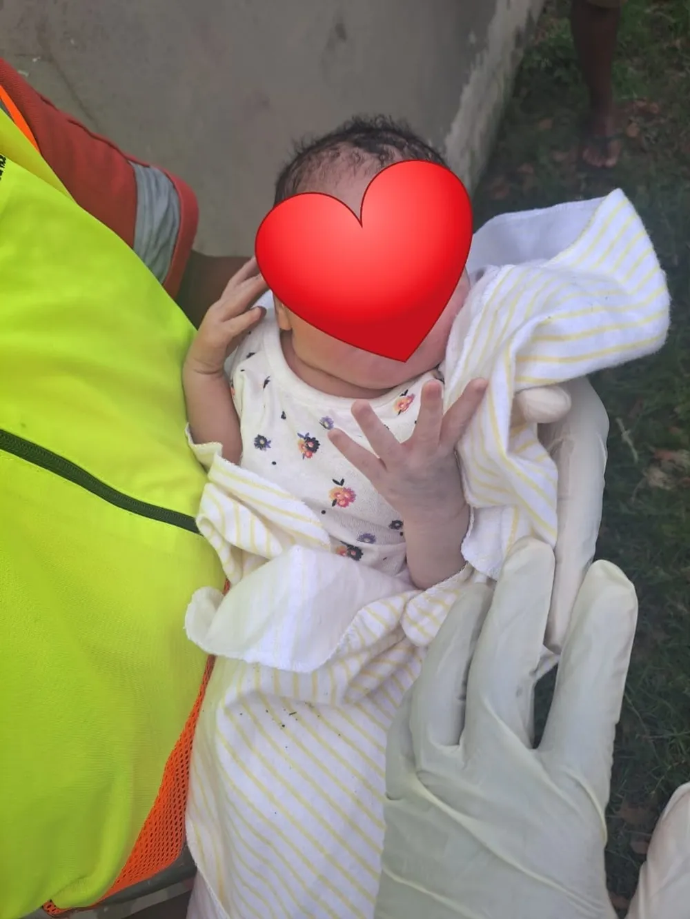 “The infant, who is estimated to be under a week old, appeared to be in good health and was taken to a nearby clinic for further assessment.”
