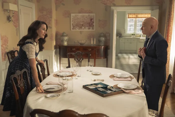 Kristin Davis as Charlotte York Goldenblatt and Evan Handler as Harry Goldenblatt in a scene from 'And Just Like That...' season 3.