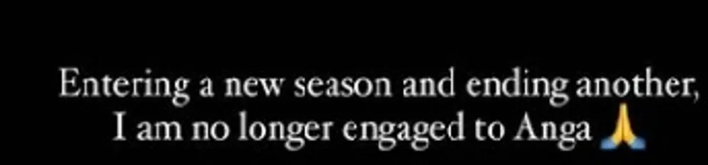 She wrote: “Entering a new season and ending another, I am no longer engaged to Anga.”