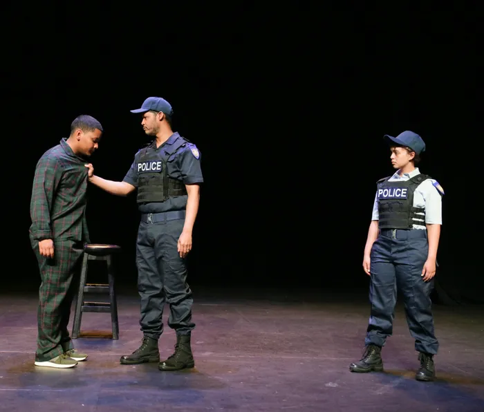 Joshwin Dyson, Wyane Van Rooyen and Carla Classen in the stage production, ‘Laaitie mettie biscuits’. Picture: Thandile Zwelibanzi