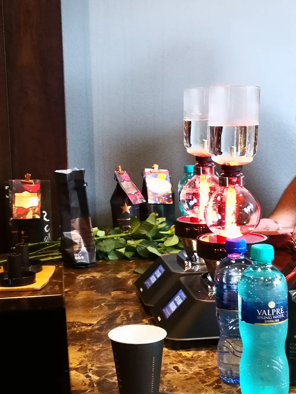Using the Ecuador blend, the coffee masters used the chemex, French press, clover and syphon methods prepare the coffee. And with all four methods, the same coffee blend tasted different and even looked different.