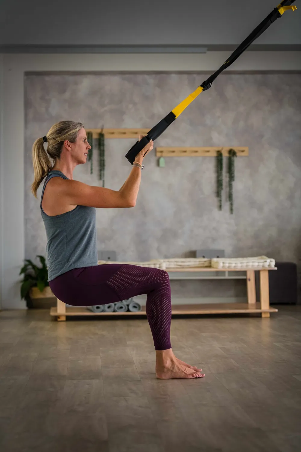 Suspension Pilates also eases anxiety and stress, helps create stronger stabilisation, flexibility, and strength and, most of all, makes you attentive of your posture and muscle balance.