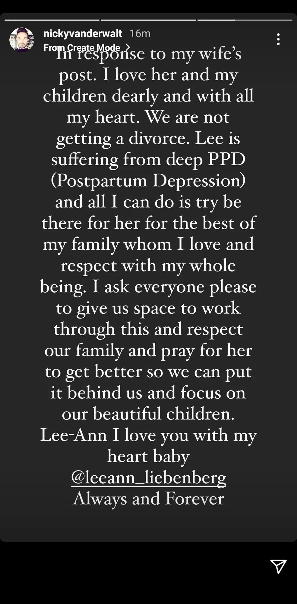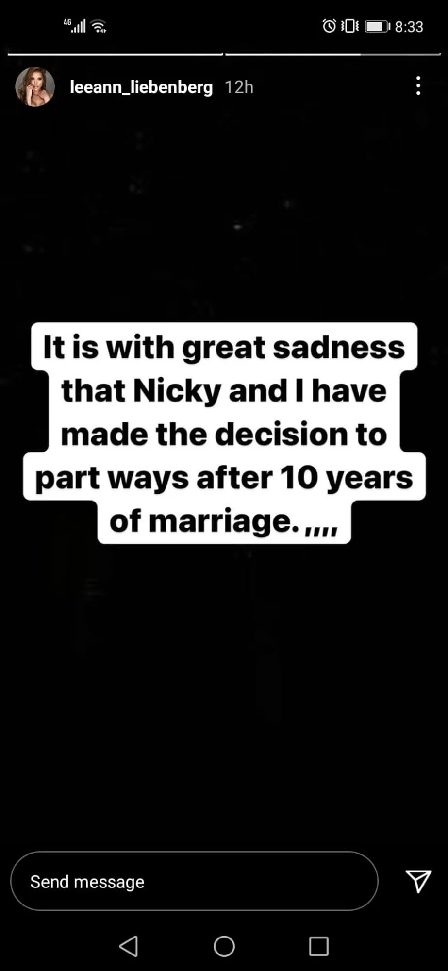 But social media woke up to a shock announcement on Saturday morning when Liebenberg shared, via her Instagram stories, that she and hubby van der Walt had decided to part ways.