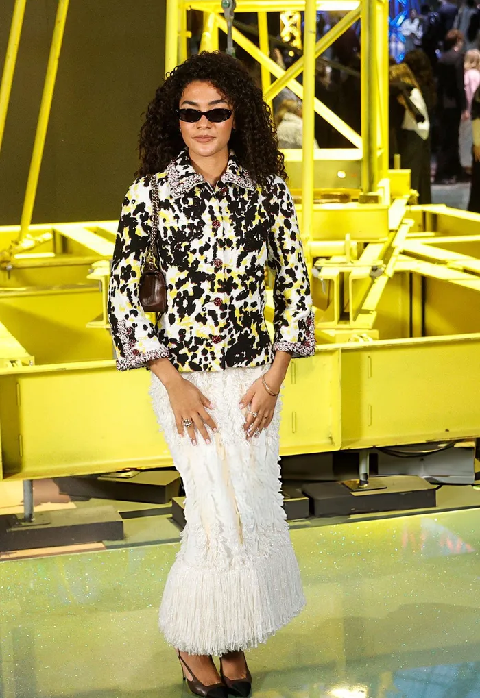 Lori Harvey played with patterns and colour as she graced the front row seat at the Chanel fashion show.