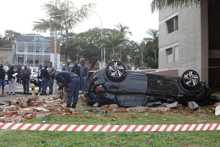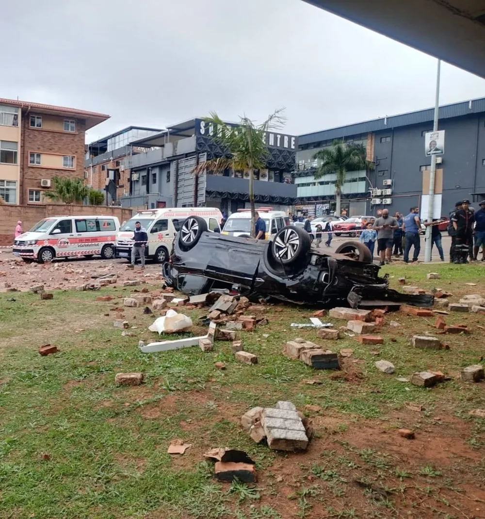 eThekwini fire station commander Felix Nzama said that they arrived on the scene outside the shopping mall in Overport Drive to find a vehicle resting on its roof.