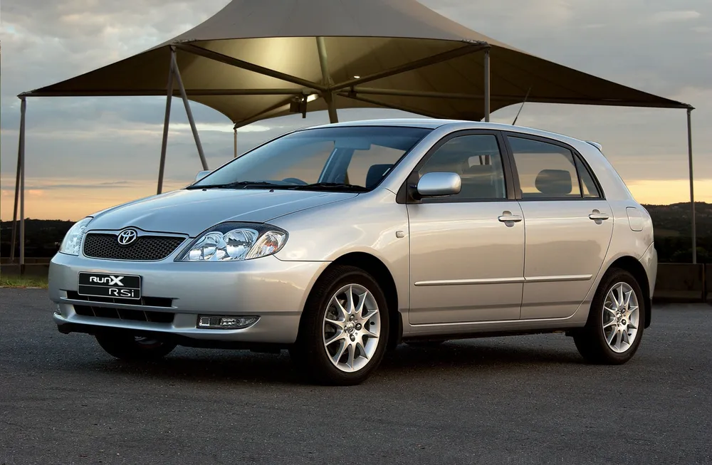 9th-generation: With the millennium Corolla, launched locally in 2002, South Africans could once again have a modern hatchback variant, this time wearing a RunX badge. Feeling every bit like a baby Camry, the E120 Corolla also saw its predecessor’s outdated engines being replaced by more modern 1.4-, 1.6- and 1.8-litre units, featuring variable valve timing. There was also a high-revving RunX RSI variant, which offered 141kW.