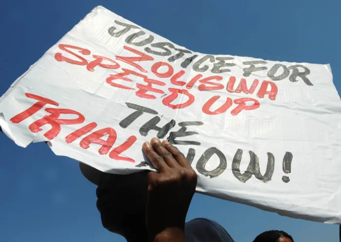 Gender activists protest against the more than 30 postponements of the trial of men accused of murdering a lesbian. Picture: Cindy waxa Gender activists protest against the more than 30 postponements of the trial of men accused of murdering a lesbian. Picture: Cindy waxa