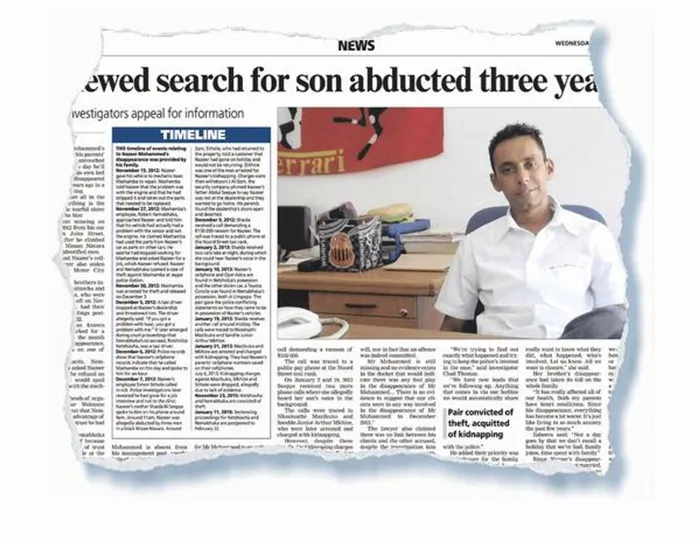 The Star ran a story about the search for missing businessman Nazeer Mohammed on January 13 last year. The Star ran a story about the search for missing businessman Nazeer Mohammed on January 13 last year.