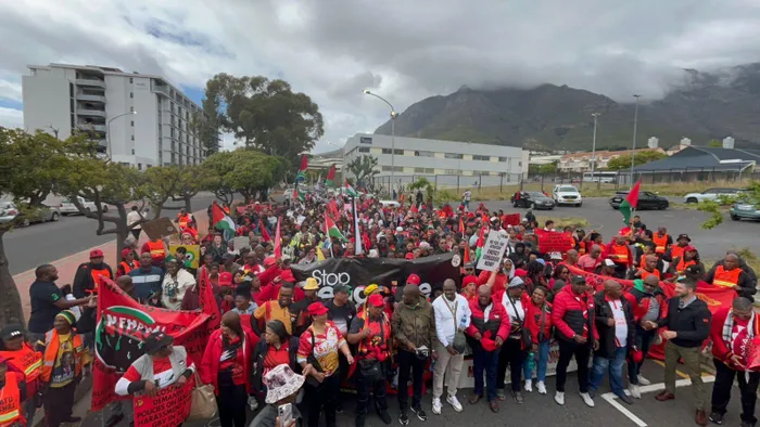 In solidarity with the march, the Palestine Solidarity Campaign (PSC) joined the protest, linking the struggle for decent work in South Africa with global justice.