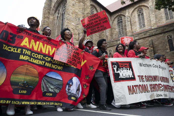 A group of about 300 Congress of South African Trade Unions (Cosatu) members and supporters marched through the city centre to deliver a memorandum of grievances to the three spheres of government, calling for decent and sustainable employment.