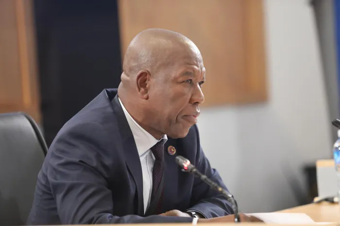 The third witness for the day, Lieutenant General Dumisani Mbotho, serving as Divisional Commissioner: National Priority Offences Operations at DPCI/Hawks testifying at the Madlanga Commission of Inquiry.