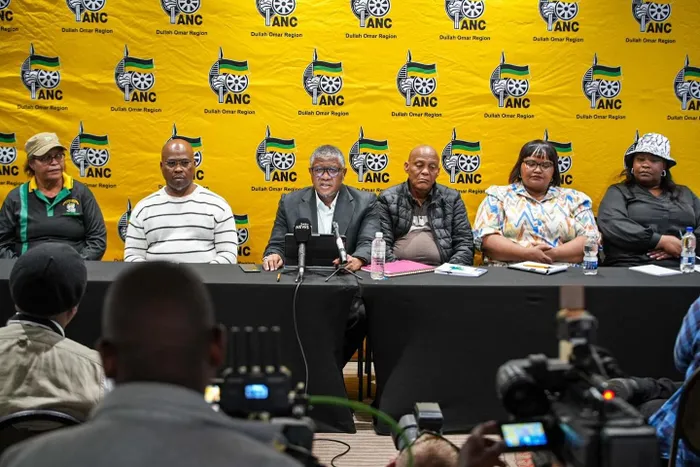 The ANC Provincial Task Team, with the exception of Ebrahim Rasool, at a press conference held with Secretary-General Fikile Mbalula last week.