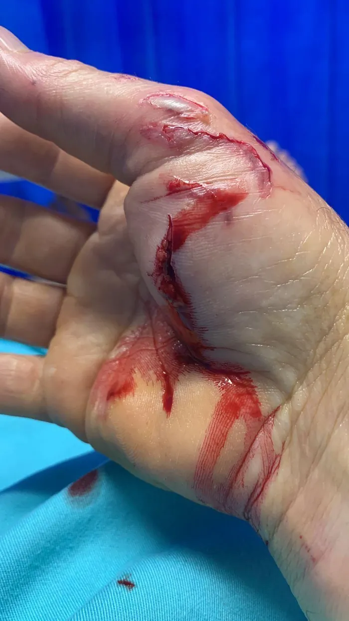 Deep cuts in his hand after being bitten by a seal.