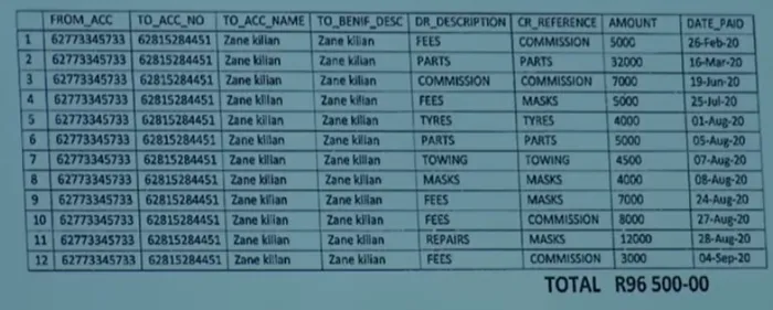 Two more payments followed in September 2020, this time from an entity called Ricky Holdings. One of these was a R20 000 payment on September 2, which Modack confirmed he authorised.