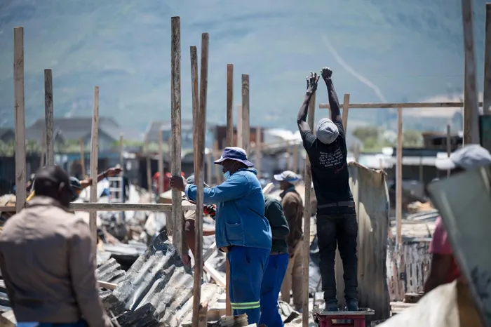 REBUILDING: Masiphumelele residents cobble shelters with what they have