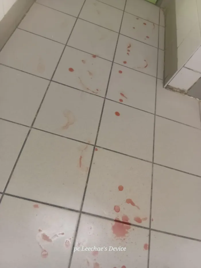 Blood drops inside the Tygerberg Hospital bathroom in the maternity ward.