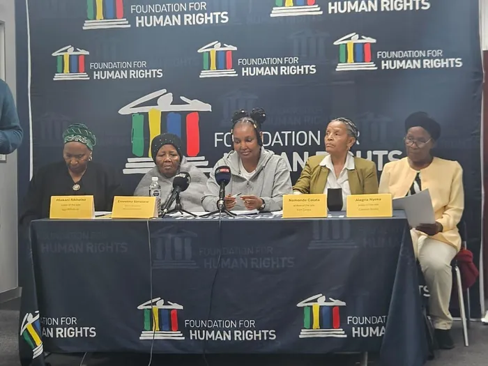From left to right: Hlekani Rikhotoso, Ernestina Simelane, Thembi Simelane, Nomonde Calata and Alegria Nyoka during Sunday's press briefing in Johannesburg.