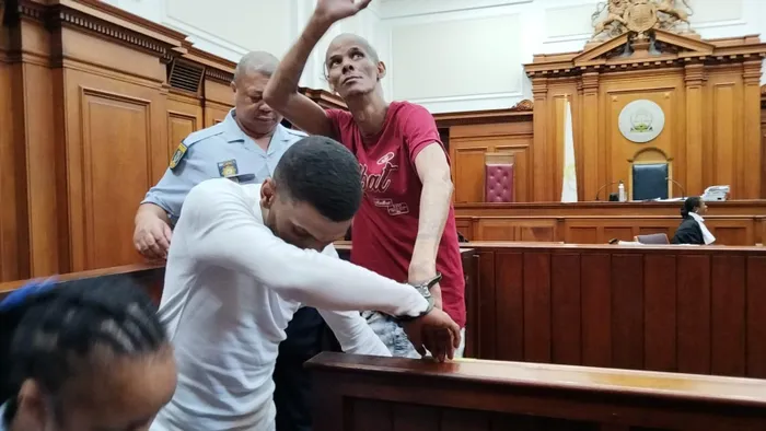 The Western Cape High Court has handed down life sentences to Jeremiah Fortuin (pictured in white T-shirt) and Ricardo Cloete (pictured in red T-shirt) for the murder of Shahieda Nathan, a pregnant woman caught in the crossfire of gang violence.