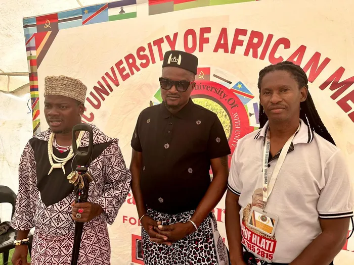 Traditional healers Mandla Lekhuleni popularly known as Prof Lekhuleni, Rei Magoxa Mozambique and fellow traditional healer Sefadi Mohami during a gathering in Ekangala, City of Tshwane, where they united in condemning muthi murders, ritual killings and the abuse of children, saying such acts have no place in African traditional healing.