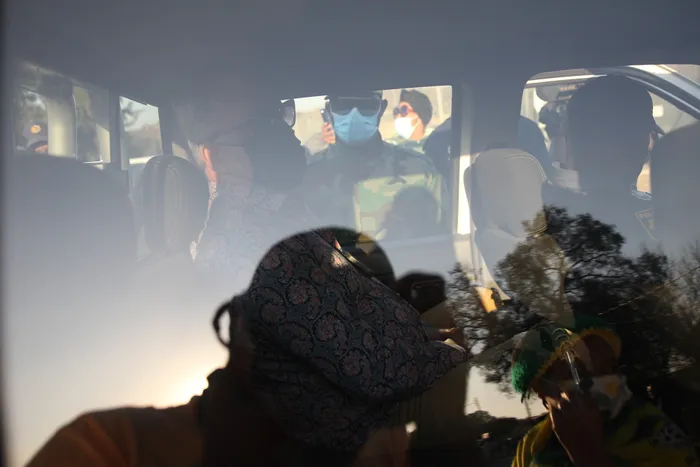 Suspended ANC NEC member Carl Niehaus in a police vehicle after being arrested. Picture: Doctor Ngcobo/African News Agency(ANA)