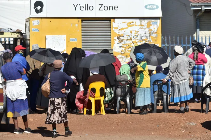 The elderly social grant beneficiaries queue outside the Post Office in Sebokeng to collect their grants, long queues could be seen around Mid-day inside and outside the premises of the Post Office, some of the elderly complained about queueing from the morning. Picture: Itumeleng English/African News Agency(ANA)