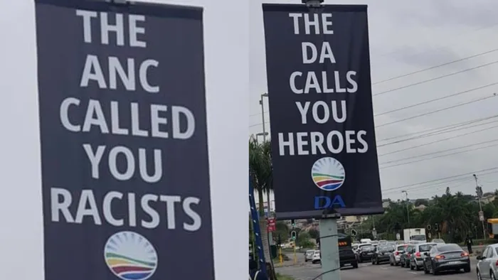 The ANC in KZN said the posters that say: “The ANC called you racists” and “The DA calls you heroes” are insensitive and aimed at pitting people of the province against each other.