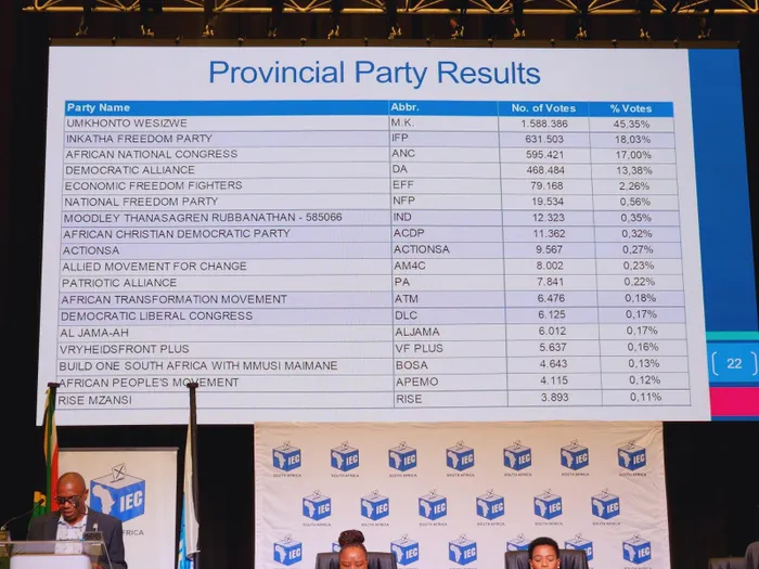 The IEC in KwaZulu-Natal has released the province's election results. Picture: Se-Anne Rall/IOL The IEC in KwaZulu-Natal has released the province's election results. Picture: Se-Anne Rall/IOL