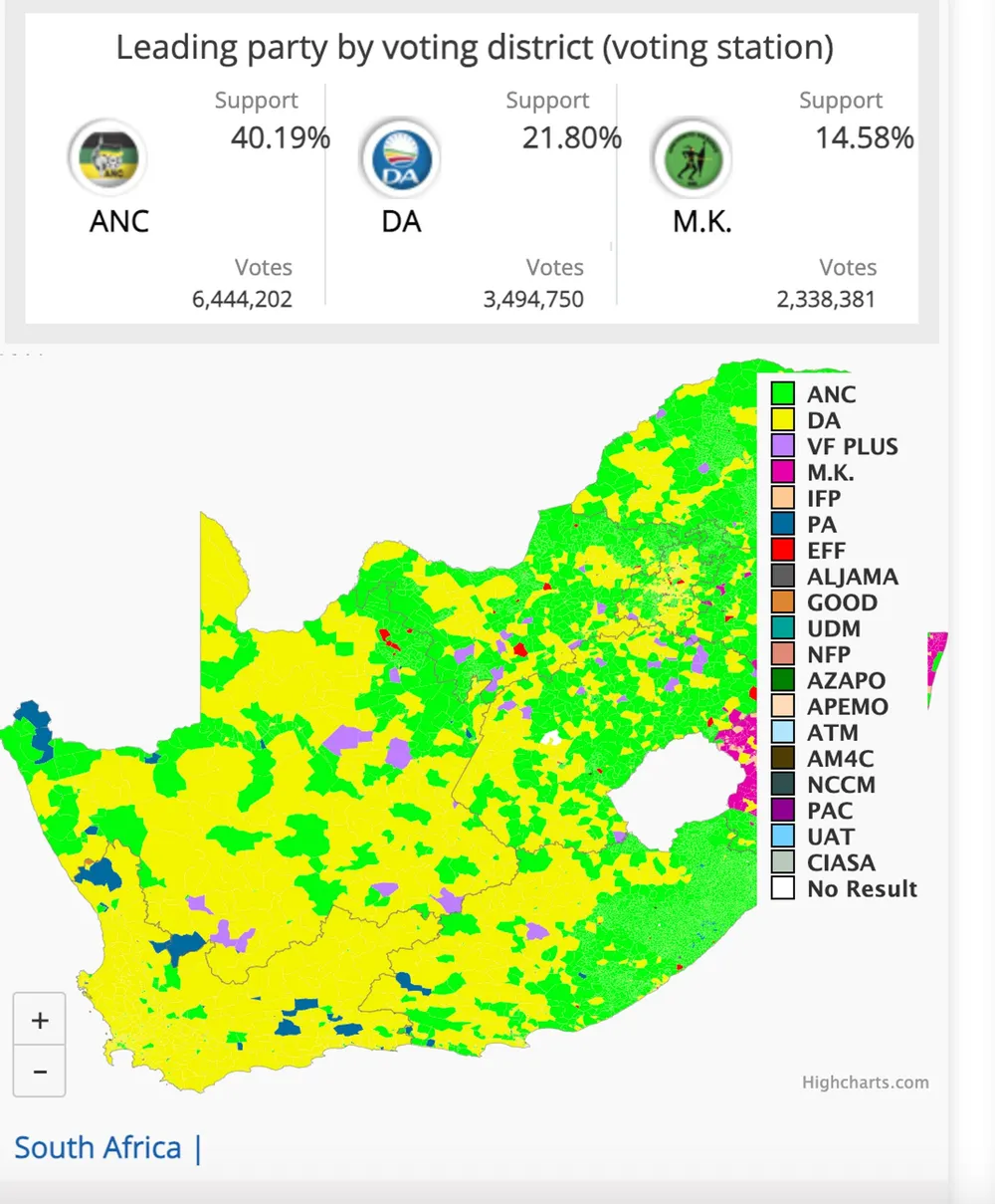 For the 2024 election results, the MK Party shocked the nation after performing well in the elections. It has obtained 58 seats.