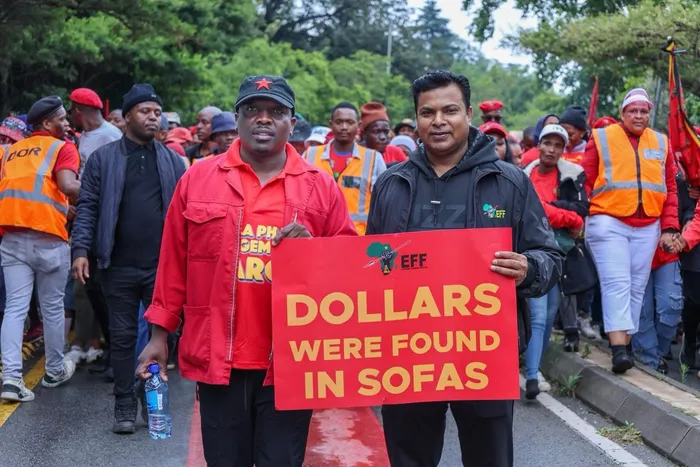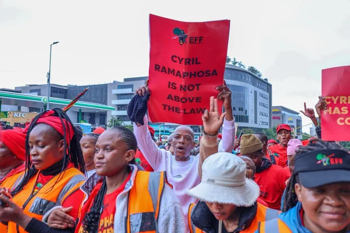 Members of the EFF march to the Constitutional Court demanding a release of the Phala Phala judgment.