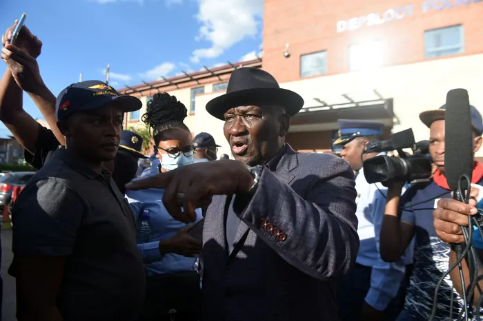 South Africa - Johannesburg - 06 April 2022 - Police Minister Bheki Cele arrived in Diepsloot where residents have taken to the streets to protest after seven people were reportedly shot dead and 14 others injured in separate incidents recently. Picture: Itumeleng English/African News Agency (ANA)