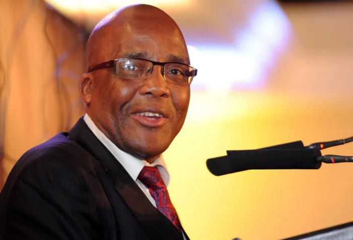 Bust shot of a man speaking near microphone Home Affairs Minister, Dr Aaron Motsoaledi. File Picture