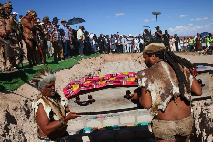 The reburial ceremony of 63 Khoi and San ancestral human remains held at Kinderlê Monument in Steinkopf, Northern Cape Province.