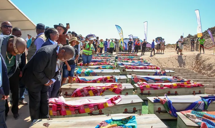 The remains were laid to rest at a historic monument in Steinkopf, in the Northern Cape province, during a ceremony attended by President Cyril Ramaphosa.