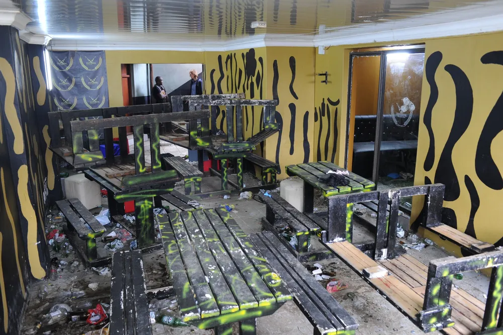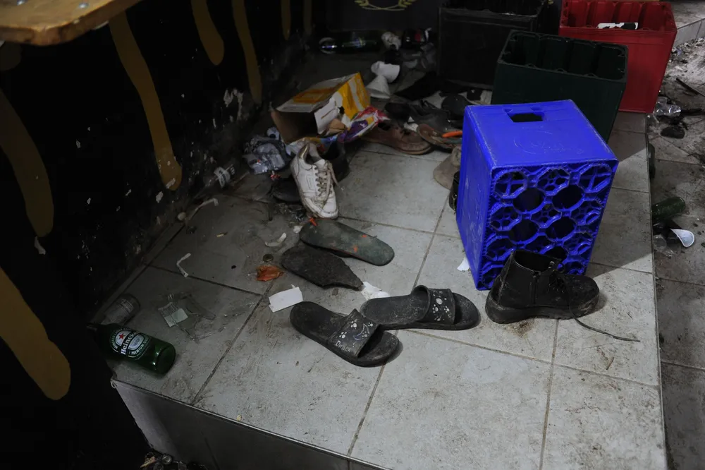 Alcohol bottles strewn across the floor, beer crates, broken glasses and tables, unaccounted-for pairs of shoes and a police tape used to cordon-off the scene was all that was left for loved ones to see.