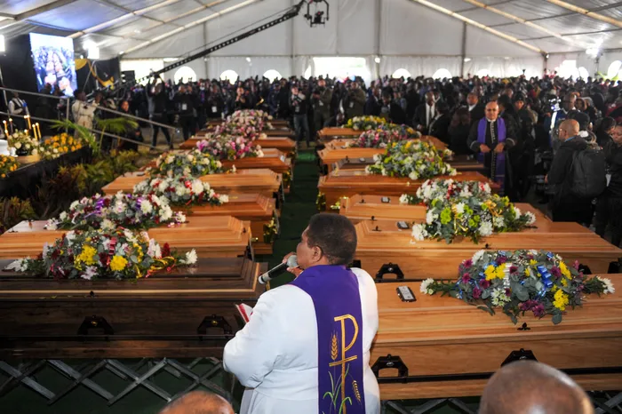 The mass funeral service of 21 young people in Scenery Park, East London. The teenagers tragically passed away at the Enyobeni tavern in Scenery Park, East London. Pictures - Henk Kruger/African News Agency (ANA).