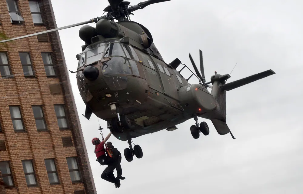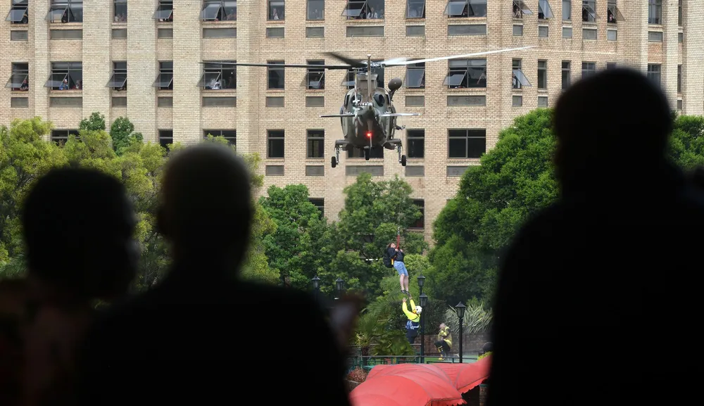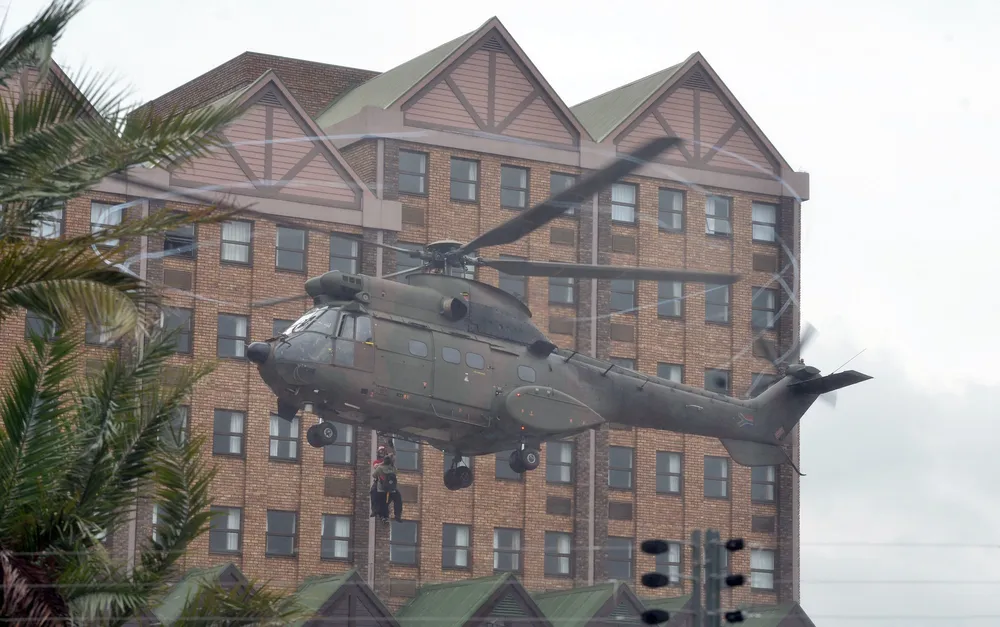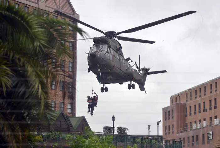 A SANDF helicopter airlifts Centurion Hotel guests and staff to safety following the floods in and around the Centurion area. Picture: Oupa Mokoena/African News Agency (ANA) A SANDF helicopter airlifts Centurion Hotel guests and staff to safety following the floods in and around the Centurion area. Picture: Oupa Mokoena/African News Agency (ANA)