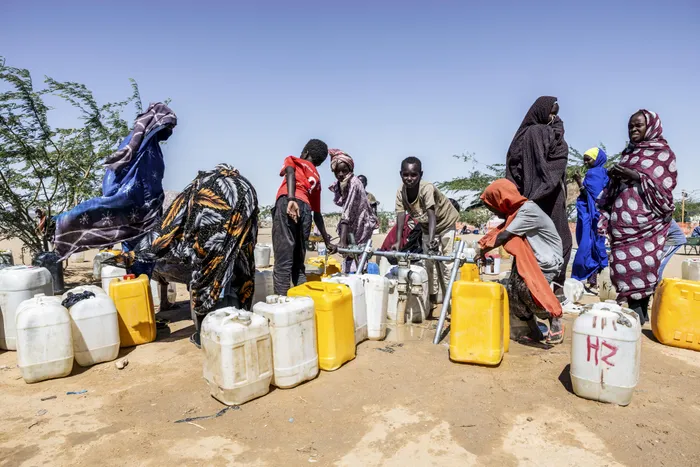 Sudanese refugees queue to fill jerrycans with water at Oure Cassoni camp in Chad. With the last army stronghold in Sudan's western Darfur region having fallen to paramilitary forces on October 26, the United Nations expects a mass influx of refugees.