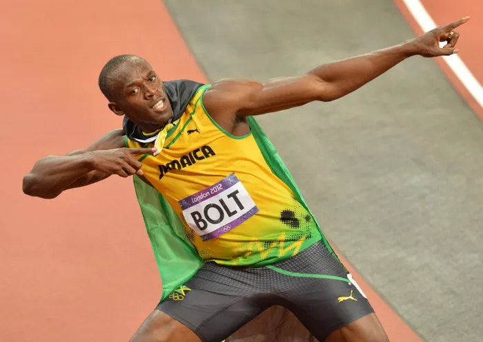 LONDON, ENGLAND - AUGUST 5, Usain Bolt of Jamaica makes his bolt sign during the evening session of athletics at the Olympic Stadium on August 5, 2012 in London, England Photo by Roger Sedres / Gallo Images LONDON, ENGLAND - AUGUST 5, Usain Bolt of Jamaica makes his bolt sign during the evening session of athletics at the Olympic Stadium on August 5, 2012 in London, England Photo by Roger Sedres / Gallo Images