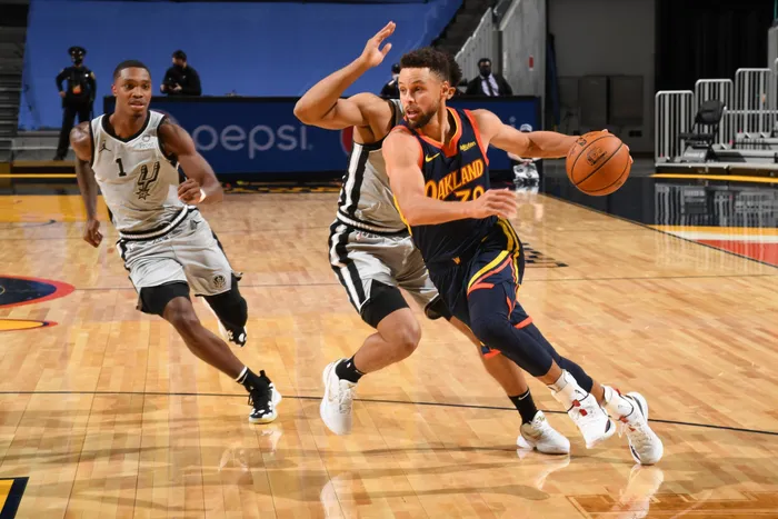 Stephen Curry #30 of the Golden State Warriors dribbles the ball during the game against the San Antonio Spurs. Photo: Supplied