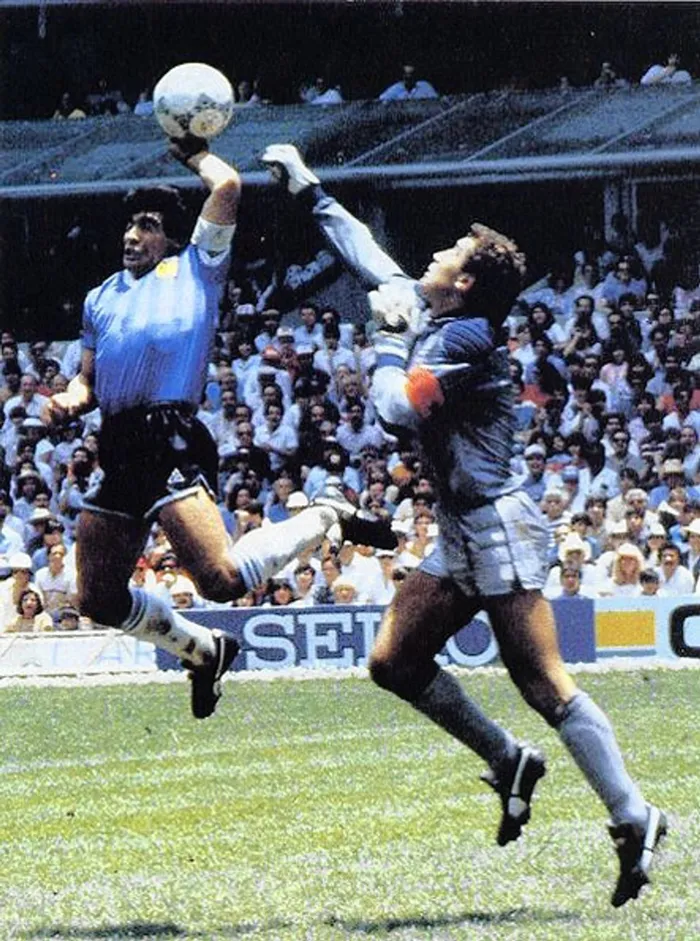 Diego Maradona scores the infamous ’hand of God’ goal against England’s Peter Shilton at the 1986 World Cup in Mexico FILE - Diego Maradona scores the infamous ’hand of God’ goal against England’s Peter Shilton at the 1986 World Cup in Mexico.