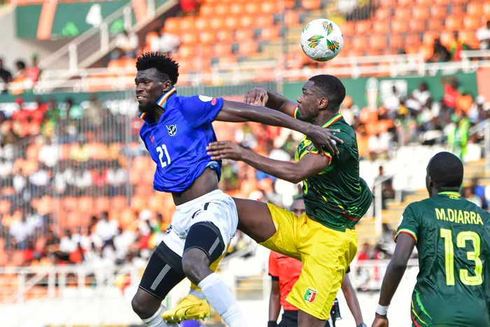 Mali defender Sikou Niakate fights for the ball with Namibia's Lubeni Haukongo during their Africa Cup of Nations group E football match Mali defender Sikou Niakate fights for the ball with Namibia's Lubeni Haukongo during their Africa Cup of Nations group E football match at the Stade Laurent Pokou in San Pedro on Wednesday. Photo: Sia Kambou/AFP