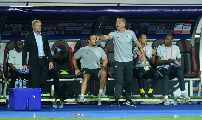 Mark Fish shouts instructions form the Bafana Bafana bench during the 2019 Afcon Finals last 16 match between Egypt and South Africa.