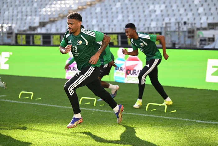 Bafana Bafana striker Lyle Foster goes through his paces at training ahead of the friendly against Panama at the DHL Stadium in Cape Town on Tuesday night.