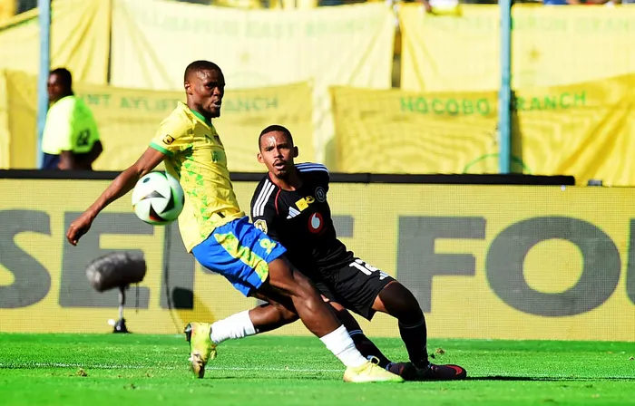 ORLANDO Pirates forward Oswin Appollis in action against Mamelodi Sundowns' Zuko Mdunyelwa as the two sides continue their duel for domestic dominance.