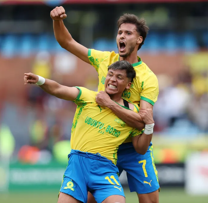 Marcelo Allende of Mamelodi Sundowns celebrates his goal during their CAF Champions League against Saint Eloi Lupopo at the Loftus Versfeld this past weekend. Photo: BackpagePix